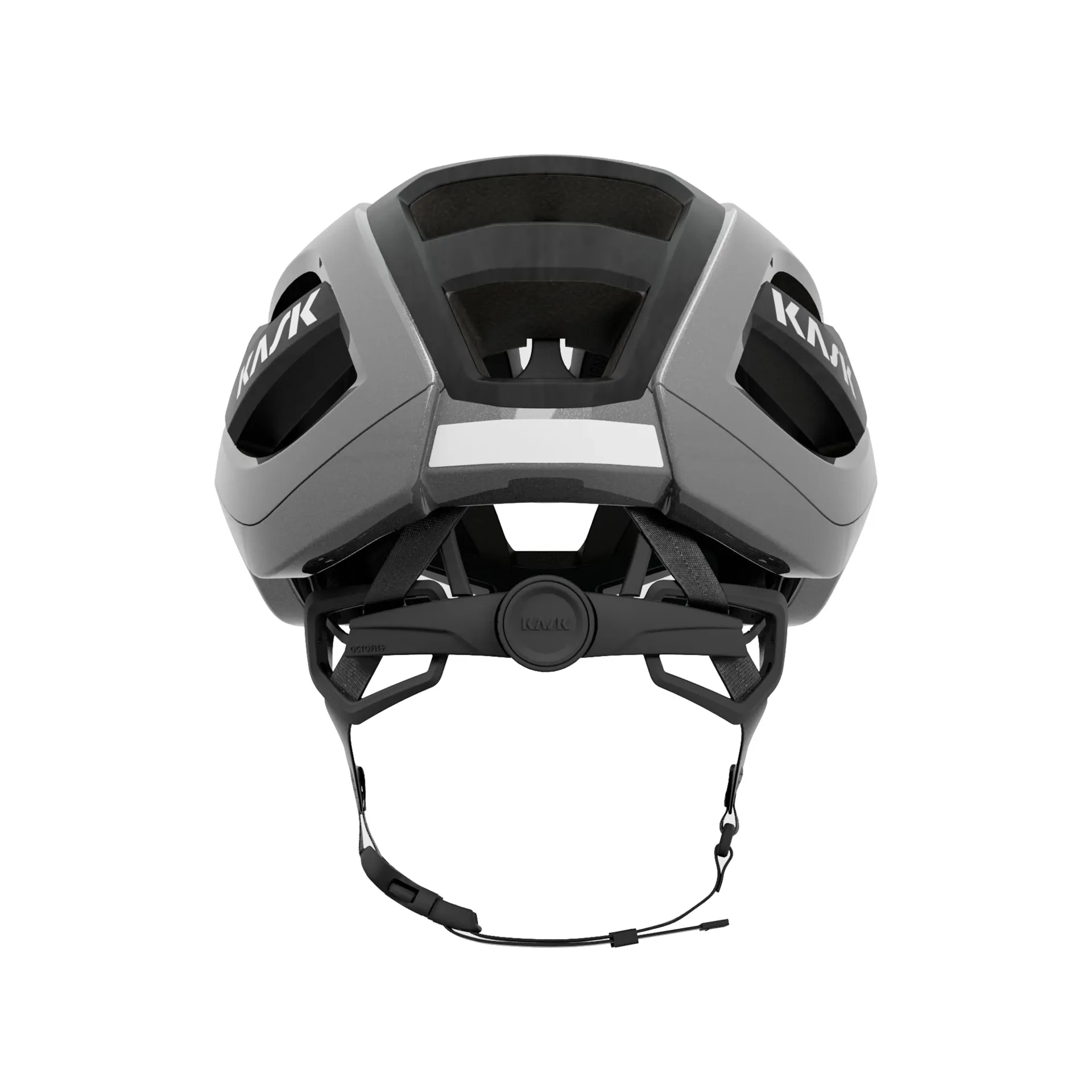 The Elemento has been engineered to be both super-aerodynamic and to allow high levels of ventilation, thanks to its innovative design and the introduction of various pioneering technologies, such as Fluid Carbon 12 and Multipod. Fluid Carbon 12’s composite technopolymer absorbs more energy from an impact than traditional materials and distributes the force generated more evenly across the entire helmet. This benefit has enabled KASK's technicians to increase the size of the internal channels, which improves ventilation, while simultaneously reducing the size of the ventilation holes for improved aerodynamics. Multipod is KASK’s proprietary 3D-printed internal padding. This elastomer material enables the helmet to better withstand the energy generated by linear and rotational impacts. Multipod functions isotropically, meaning it withstands the energy from impacts the same regardless of the direction in which the force is applied. The Elemento’s OCTOFIT+ helmet retention system allows for a more fine-tuned fit to provide greater safety and stability. A reflective graphic at the back increases rider visibility.